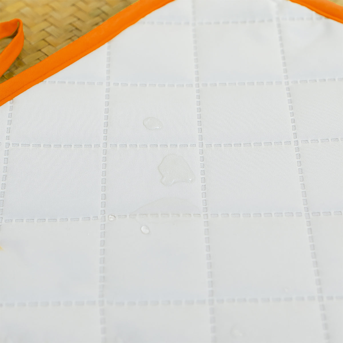 Ytan är tillverkad i 100 % ekologisk bomull med mjuk dubbel gasväv i vitt, medan insidan har ett vattentätt PVC-lager som skyddar mot läckage.