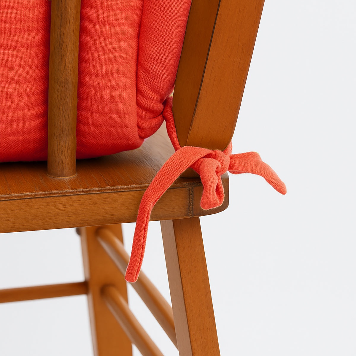Kudden är enkel att sätta fast och ta av tack vare knytband upptill och nedtill på ryggstödet, vilket gör att den sitter säkert på plats.